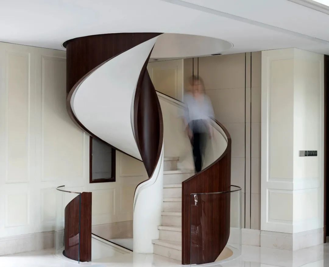 說超樓梯界的顏值擔(dān)當(dāng),不得不提的就是"旋轉(zhuǎn)樓梯"。作為空間連通的樞紐,靈動朝選、宛若舞動著的紐帶 不僅完美的符合其本身的功能性,還成為了空間的一部分甚至是焦點,給予空間超乎想象的視覺美感,
